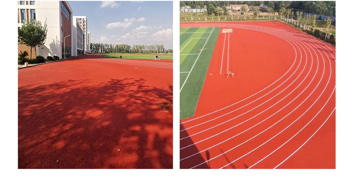 塑胶跑道面层材料主要为聚氨脂(PU)塑胶及三元乙丙(EPDM)橡胶,其优点具有:弹性优良,接着力强、耐磨、耐酸碱、抗老化,全天耐候性、环保、阻燃、防尘、无菌、无接缝、清洁、养护简单,颜色鲜艳、有利于美化环境及提高学生参与运动的兴趣。